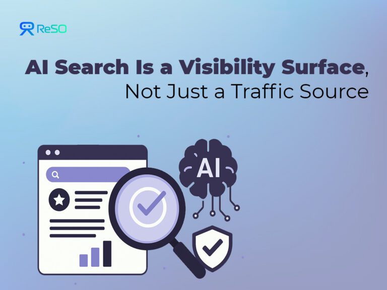 AI search acts as a “visibility surface” where citations and mentions influence users directly in responses, not just drive traffic, unlike SEO’s focus on clicks and rankings.